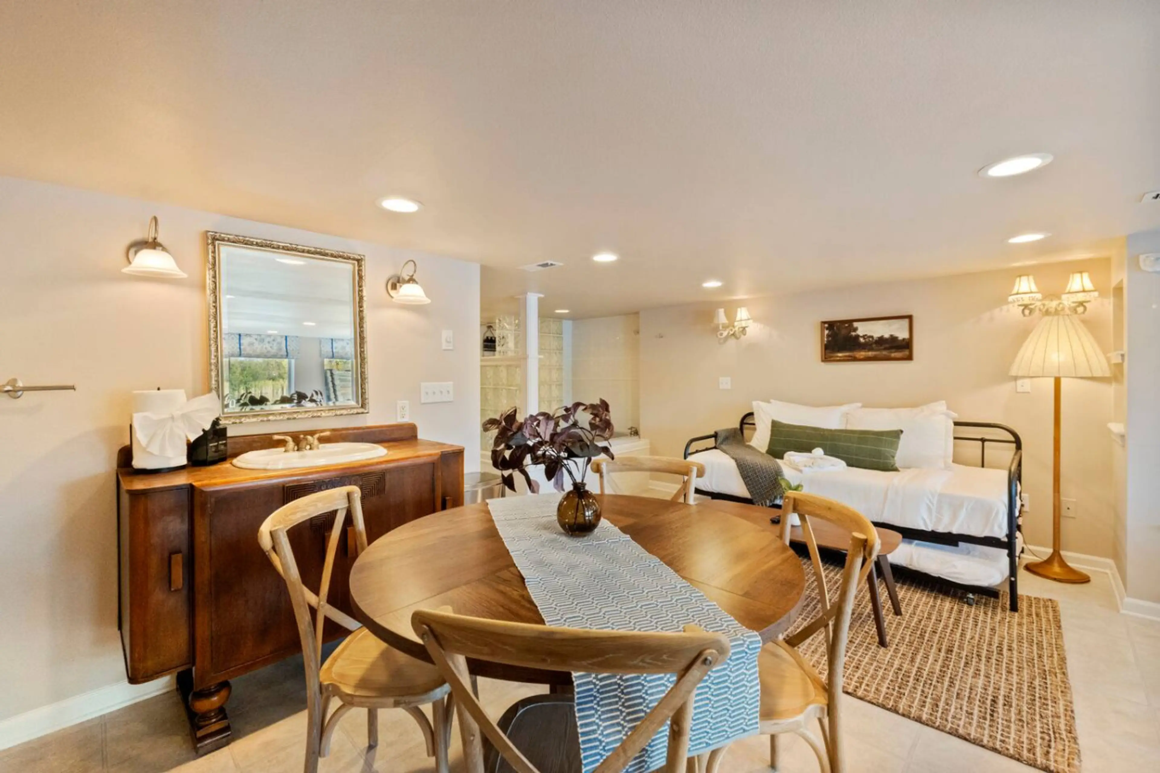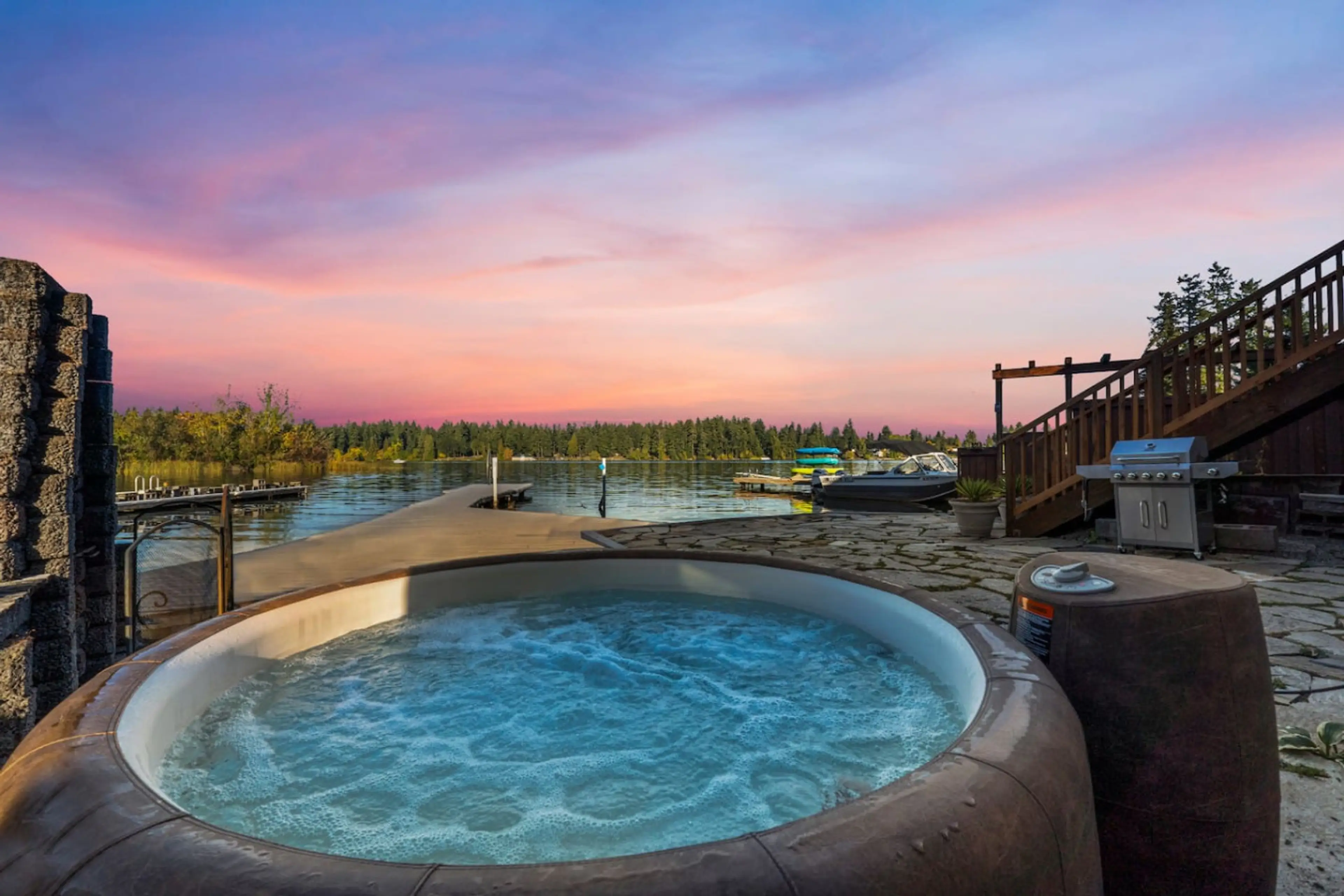 🌊 Lakeside Studio Retreat | Hot Tub • King Bed • Lake Access Escape to this peaceful lakeside studio, a cozy retreat that perfectly blends comfort and nature. Enjoy beautiful lake views, unwind in the private hot tub, and experience direct lake access — ideal for a relaxing getaway or a romantic e...